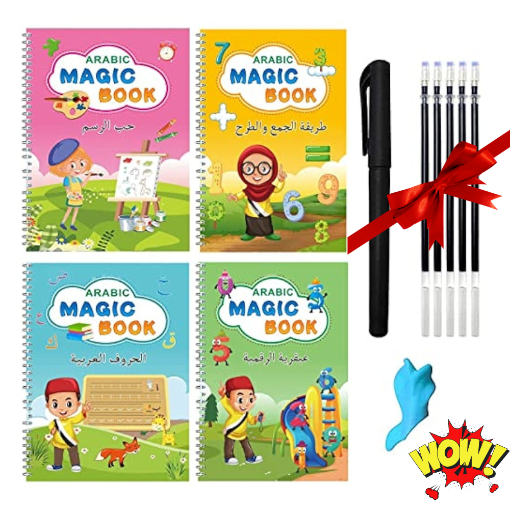 مجموعة 4كتب تعليمية magic books العربية + عبوات الحبر السحري مجانا 🎁